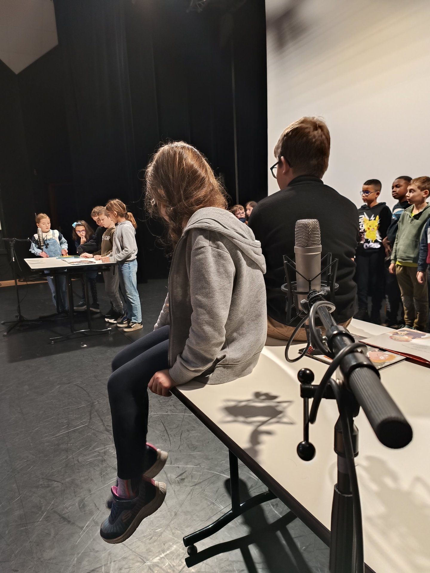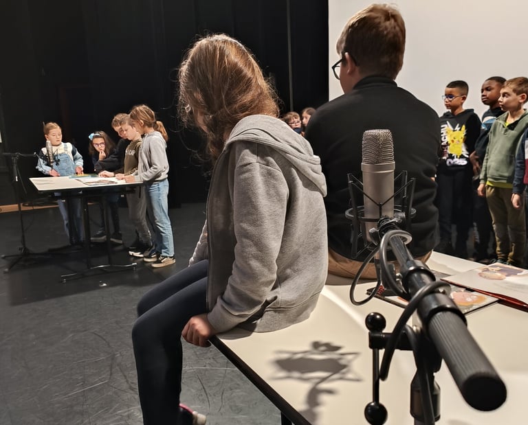 Ce format offre un possible. Simple, il suffit d'un livre et un groupe d'enfants volontaires. Chacun découvre et choisit son rôle, en fonction de sa sensibilité : comédien. nes en herbe, chasseurs de sons, technicien.nes, paroliers.ères. Un plateau d'enregistrement éphémère se dessine pour donner naissance au projet. Une aventure sensible pour tous les enfants et même si les mots écrits dans les livres ne sont pas toujours ou pas encore des amis.